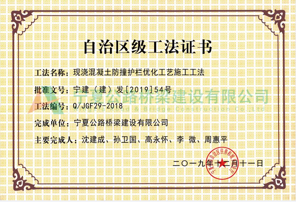 自治區(qū)級工法:現(xiàn)澆混凝土防撞護欄優(yōu)化工藝施工工法