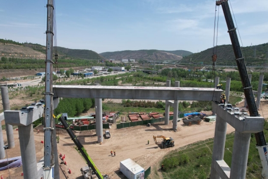 5月19日,G566西吉縣城至夏寨連接線工程項(xiàng)目第一片T梁順利安裝完成。