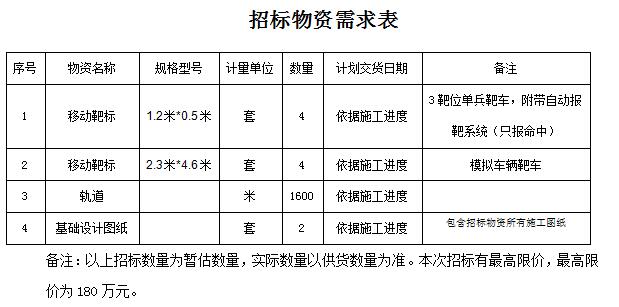(2)兩個靶場,共8套移動靶(含軌道),其中4套3靶位單兵靶車(靶標尺寸寬0.5米*高1.2米,附帶自動報靶系統(tǒng),只報命中),4套模擬車輛靶車(靶標尺寸:寬4.6米*高2.3米)。每條軌道長200米,軌道含剎車,防撞、運行軌道,軌道高于地面約5-10厘米;