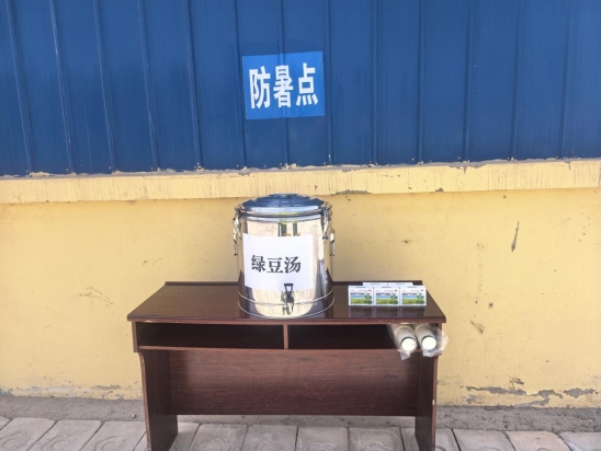 項目部精心準備了藿香正氣水、冰糖、綠豆、菊花茶等防暑降溫物資,第一時間發(fā)放到作業(yè)人員手中。在施工現(xiàn)場設(shè)置防暑點,建立防暑應(yīng)急預(yù)案,儲備防暑降暑物資,全方位做好防暑降暑工作。
