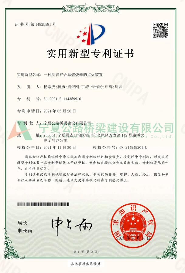 實(shí)用新型專(zhuān)利:一種瀝青拌合站燃燒器的點(diǎn)火裝置