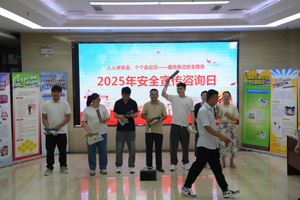 全國(guó)第24個(gè)“安全生產(chǎn)月”核心活動(dòng)——“安全宣傳咨詢(xún)?nèi)?rdquo;在各項(xiàng)目火熱開(kāi)展。6月17日下午,公司在一樓大廳設(shè)置安全咨詢(xún)臺(tái)、易拉寶展區(qū)、電子屏循環(huán)播放主題宣傳片,組織機(jī)關(guān)員工圍繞“人人講安全、個(gè)個(gè)會(huì)應(yīng)急——查找身邊安全隱患”活動(dòng)主題,通過(guò)沉浸式體驗(yàn)、教育賦能、發(fā)放宣傳材料、競(jìng)答互動(dòng)、科普宣傳等多元形式,開(kāi)展安全宣傳咨詢(xún)?nèi)栈顒?dòng)。