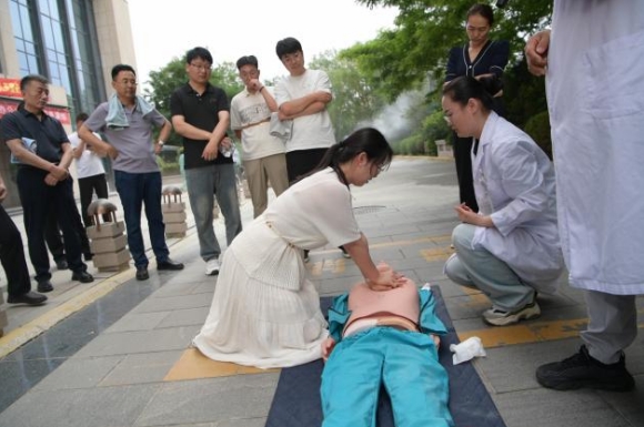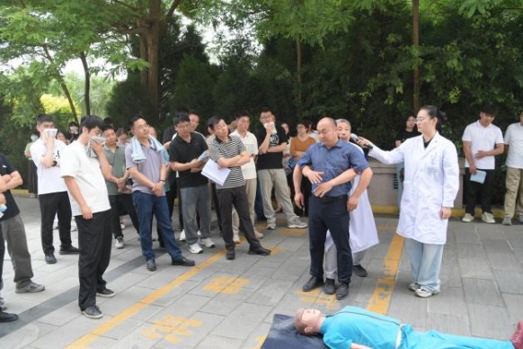 本次演練模擬6樓辦公室發(fā)生電氣火災,并伴有大量濃煙。發(fā)現(xiàn)火情后,現(xiàn)場人員立即行動,向公司應急指揮中心報告,啟動公司火災事故應急預案,同時各應急救援小組迅速響應,有序組織開展人員疏散及應急救援。演練過程中穿插對火災疏散逃生技巧、初期滅火技巧、滅火器的選型等進行講解、專人示范。最后寧夏頤陽醫(yī)院老師針對肢體受傷緊急包扎救治和心肺復蘇等進行了現(xiàn)場示范和講解培訓。