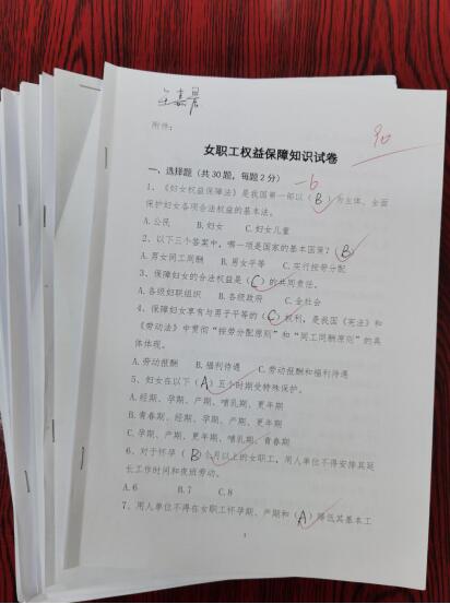 公司各基層單位因地制宜,積極開展《女職工勞動(dòng)保護(hù)特別規(guī)定》《寧夏女職工勞動(dòng)保護(hù)辦法》《寧夏婦女權(quán)益保障條例》等法律法規(guī)知識(shí)的學(xué)習(xí),全體女工參與“女職工權(quán)益保障知識(shí)試卷”有獎(jiǎng)答題活動(dòng)。