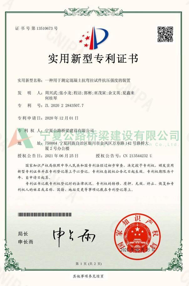 實(shí)用新型專利:一種用于測(cè)定混凝土抗彎拉試件抗壓強(qiáng)度的裝置