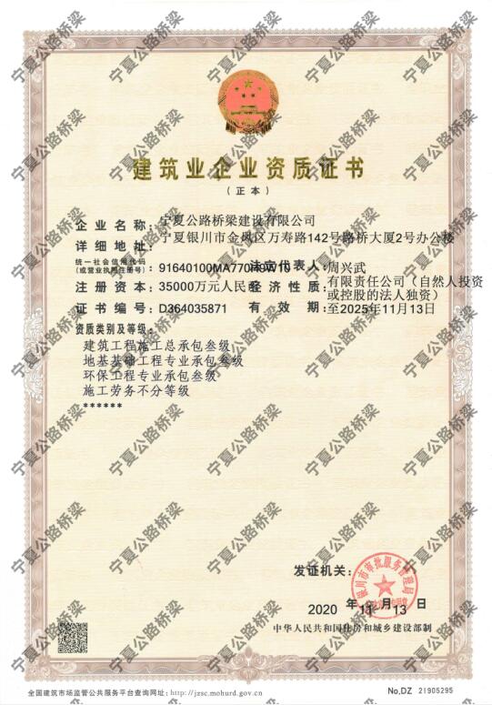寧夏公路橋梁建設有限公司建筑業(yè)