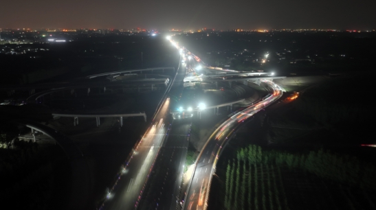 近日,臨滕三標項目柳樹莊樞紐互通立交K612+700-K614+460段跨京滬高速施工現(xiàn)場白天人頭攢動、機械轟鳴,晚上星光點點、火花閃現(xiàn),呈現(xiàn)一片熱火朝天的大干景象。